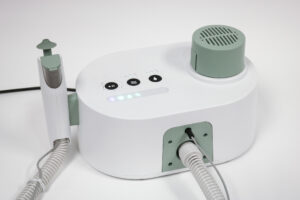 The CoolStat device is small, lightweight and portable, and can move throughout the hospital with the patient. The device generates a source of filtered air that is delivered to the patient via a single-use air tubing set. The only interface with the patient is a simple nasal mask. The CoolStat includes a closed-loop temperature control system. That means that the operator of the device can select a target temperature, and the CoolStat is designed to automatically cool and hold the patient at the target temperature.